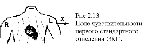 Для нахождения линий чувствительности используют теорему взаимности (см часть II приложение 1). Она гласит, что коэффициент передачи "диполь - отведение" не изменяется, если поменять местами принимающие электроды и точки зарядов, образующие диполь - источник. По этой теореме для нахождения поля чувствительности приемные электроды отведений запитывают источником тока и находят эквипотенциальные поверхности результирующего поля. Они и являются поверхностями равной чувствительности.