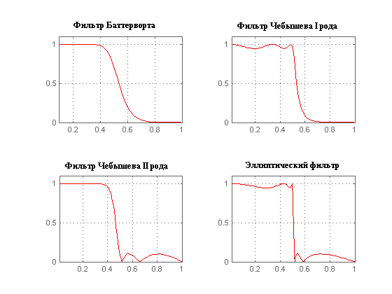 Некоторые примеры параметров простейших фильтров представлены в таблицах 1.