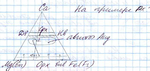 Пироксениты подразделяются на ортопироксениты (энстантиниты, гиперстениты), вебстериты, клинопироксениты (диопсидиты, авгититы). Ортопироксениты не очень распространены, в их магнезиальных разновидностях (энстантинитах, бронзитититах) нередко содержится серпентинизированный Ol, они связаны постепенными переходами с гарцбургитами, а железистые (гиперстениты) геологически связаны с норитами. Пироксениты имеют изометрически-зернистую стр-ру и отличаются буровато-желтоватой окраской разных оттенков. По крупности зерен выделяются от мелко- до гигантозернистых пироксенитов. Клинопироксениты наиболее распространены, тесно связаны с гипербазитами и габброидами. Породы состоят из диопсида (светло-зеленая окраска) или железистого CPx - авгита (темно-зеленая до черного). Маложелезистые (10-15%) содержат Ol примерно одинаковой с Px железистости и могут переходить в верлиты. Обычно 15-20% Ol. Обычная примесь – ксеноморфный титаномагнетит. Преобладают средне- и крупнозернистые пироксениты. Нередка порфировая стр-ра. Клинопироксениты повышенной железистости обычно мелкозернисты, богаче титаномагнетитом, обладают сидеронитовой стр-рой. Могут развиваться метасоматически на месте маложелезистых.