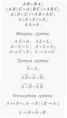 Приведем примеры наиболее важных равносильностей. Для удобства обозрения и запоминания разобьем их на группы: