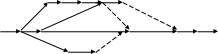 Стрелка-пунктир отражает отношение предшествования. Эти стрелки называются фиктивными работами
