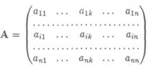 Предположим, что для производства k-й отраслью единицы k-го продукта требуется аik ≥ 0 единиц i-го продукта, производимого i-й отраслью. Соответствующая таблица затрат выглядит так: