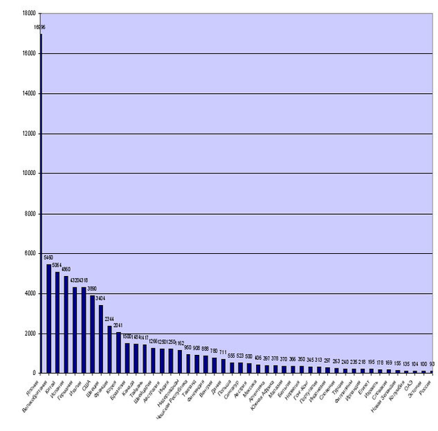 Распределение по странам мира предприятий, сертифицированных по ISO 14001
