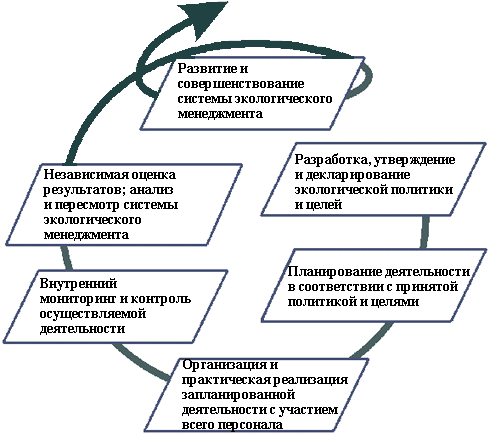Под системой экологического менеджмента принято понимать часть общей системы производственного менеджмента, включающую необходимую организационную структуру, планирование деятельности, распределение ответственности, практическую работу, а также процедуры, процессы и ресурсы для разработки, внедрения, оценки достигнутых результатов и совершенствования экологической политики [2, 6].