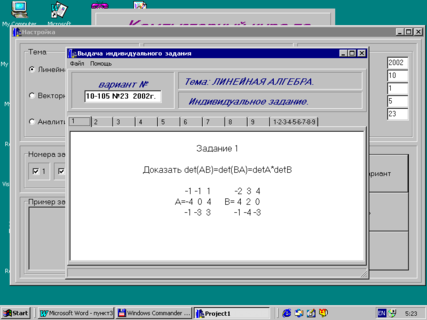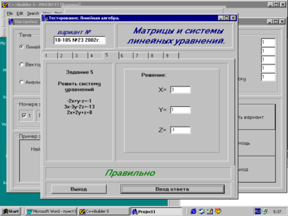 “Тестирование” – позволяет проверить результаты выполнения полученного ранее индивидуального задания.