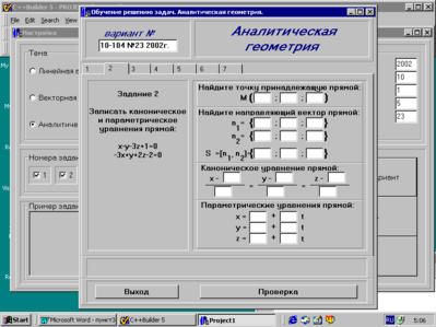 Для проверки результатов решения типовой задачи обучаемому требуется нажать на кнопку < Проверка >, после чего фон неправильных результатов приобретет красный цвет, а правильных останется белым.