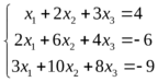 Указания: (2) методами Крамера и Гаусса найти единственное решение, сделать проверку; (3) методом Гаусса найти ранг системы и её общее решение, выделить из последнего частное решение и все фундаментальные решения соответствующей однородной системы, сделать проверку каждого.