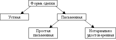 Гражданский Кодекс РФ указывает также на то, что по своему оформлению сделки могут быть устными (ст. 159 ГК РФ) и письменными (ст. 160 ГК РФ), а последние, в свою очередь — совершенные в простой письменной форме (ст. 161 ГК РФ), или нотариально удостоверенными (ст. 163 ГК РФ).