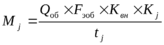 где Мj— производственная мощность по j-му виду продукции, шт.; Qоб — количество единиц оборудования, шт.; Fэо6— эффективный фонд времени работы единицы оборудования, станко-час; Квн — коэффициент выполнения норм; Кj — коэффициент, определяющий долю j-го (j = 1.,.k) вида продукции в общем объеме производственной программы; k — число видов продукции, включенных в расчет производственной программы; tj— трудоемкость единицы ]-го вида продукции, нормо-час.