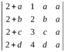 Ответ: а) есть нулевая строка; б) имеются два одинаковых столбца; в) первые две строки пропорциональны; г) если к третьему столбцу прибавить первый, то получим столбец, равный второму.