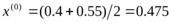 | 0 1 2 3 4 5 6 7 | 0.4000 0.4000 0.4500 0.4500 0.4625 0.4688 0.4719 0.4734 | 0.6000 0.5000 0.5000 0.4750 0.4750 0.4750 0.4750 0.4750 | -0.5745 -0.5745 -0.1904 -0.1904 -0.0906 -0.0402 -0.0148 -0.0020 | 1.1201 0.2183 0.2183 0.0107 0.0107 0.0107 0.0107 0.0107 | 0.5000 0.4500 0.4750 0.4625 0.4688 0.4719 0.4734 [0.4742] | 0.2183 -0.1904 0.0107 -0.0906 -0.0402 -0.0148 -0.0020 |