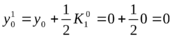 Данная задача на первой половине интервала совпадает с задачей из примера 1 предыдущего практического занятия. Поэтому для нахождения решения в первых узлах будем использовать результаты решения этой задачи методом Рунге-Кутты четвертого порядка. Далее используем формулу: