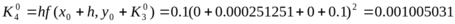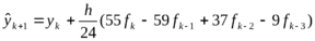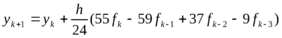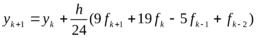 Как и в предыдущем примере в первых трех узлах после начального решение получаем методом Рунге-Кутты 4-го порядка. Начиная с четвертого узла (k=4)на каждом шаге в расчетах