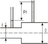 , если разница показаний пьезометра, установленных в трубе и мерной диафрагме с диаметром