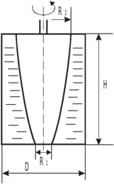 Определить наибольшую угловую скорость сосуда, до которой сохранится относительное равновесие жидкости.