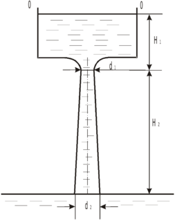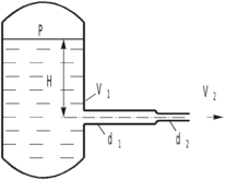 и затем вытекает в атмосферу через насадок диаметром
