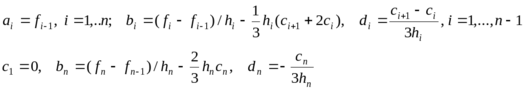 Построить кубический сплайн для функции, заданной в узлах интерполяции, предполагая, что сплайн имеет нулевую кривизну при