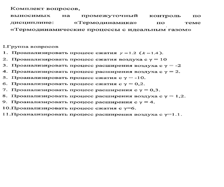 по дисциплине «Термодинамика»