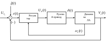 - шум в управляющем сигнале, обусловленный ошибками измерения угла крена - стационарный случайный процесс;