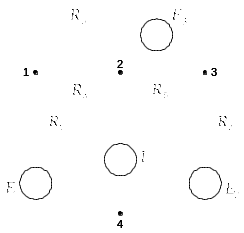 1.3. В цепи задано R1 = R3 = R4 = 10 Ом, R2 = R5 = 20 Ом. Определить входное сопротивление.