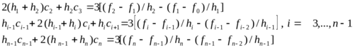 Построить кубический сплайн для функции, заданной в узлах интерполяции, предполагая, что сплайн имеет нулевую кривизну при