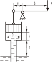 , необходимую для удержания в равновесии поршня, если труба под поршнем заполнена водой, а размеры трубы