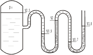 Задача 12 Определить избыточное давление воздуха в напорном баке, заполненном водой, по показанию ртутного манометра. Отметки даны в м от уровня пола.