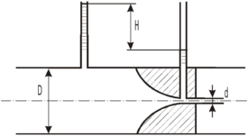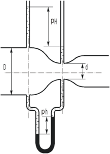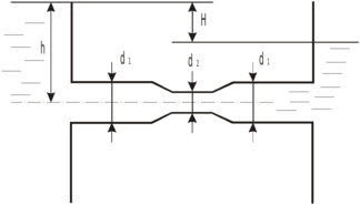 , если разница показаний пьезометра, установленных в трубе и мерной диафрагме с диаметром