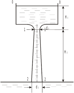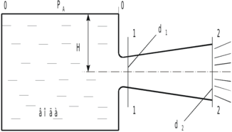 и затем вытекает в атмосферу через насадок диаметром