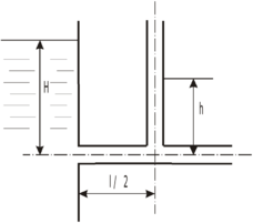 , получено, что уровень в пьезометре, установленном на середине трубы