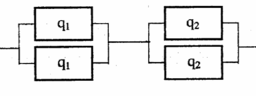 Схема расчета надежности показана на рисунке. Необходимо найти по известным вероятностям отказов элементов q1 = 0,1 и q2 = 0,2 вероятность безотказной работы изделия.