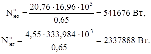Мощность, снимаемая с турбины, равна мощности потребляемой насосами: