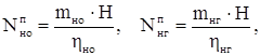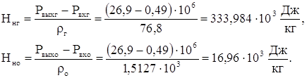– КПД насосов окислителя и горючего, принимаемые приближённо равными 0,65, H – напор насосов: