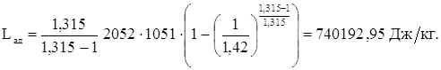 С учетом выбранных величин, удельная адиабатная работа газа в турбине равна: