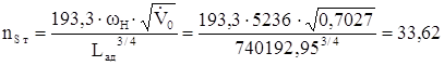 – срывной коэффициент быстроходности; для выбранного типа насоса он принимается равным 3000.