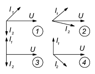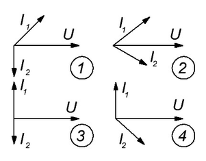 | 4 | Укажите на диаграмме, построенной для цепи с параллельным соединением катушки и идеального конденсатора, вектор тока в ветви с емкостью. | 1. 1 | ||