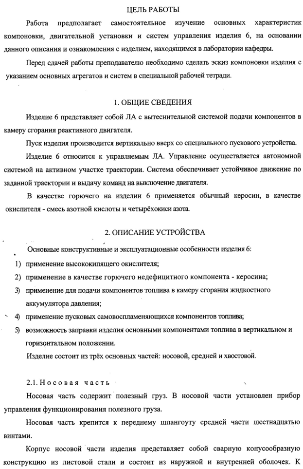 2.1.1. Изучение конструкци и функционального назначения основных систем РТС, работающего по вытеснительной системе подачи (АЗ: 4, СРС: 2)