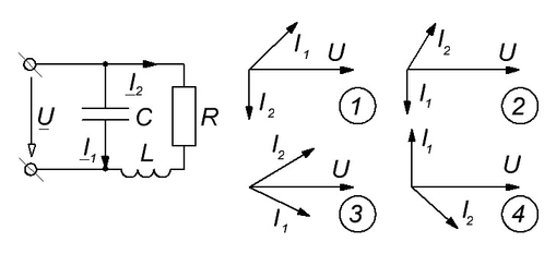 | 3 | Какая из векторных диаграмм справедлива для изображенной цепи? | 1. 1 | |||
