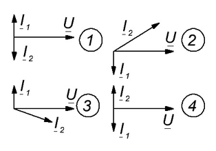 | 5 | Какая из векторных диаграмм соответствует данной цепи, если: R1 = R2 =XL = XC. | 1. 1 | |||