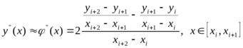 Заметим, что результат вычисления в случае равномерной сетки, совпадает с полусуммой левосторонней и правосторонней производных.