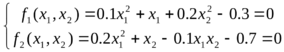 Пример 1. Методом Ньютона найти положительное решение системы нелинейных уравнений