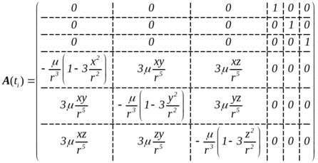 В общем случае, полный вектор состояния пользователя СНС задается компонентами положения и скорости в одной из систем координат, указанной в п.0. При этом предполагается, что начальный вектор состояния является случайным, распределенным по нормальному закону с заданным вектором математического ожидания и ковариационной матрицей.