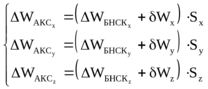 Пусть вектор реальных приращений кажущейся скорости WИНСК. Тогда осуществляя преобразование ИНСК к БНСК получаем значение вектора приращений кажущейся скорости в БНСК: