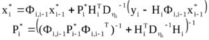 Hi – матрица частных производных измеренных параметров по вектору состояния в окрестности опорной траектории;