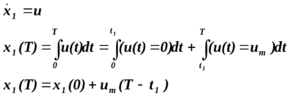 Для того, чтобы понять, какой из этих вариантов управления обеспечивает решение задачи оптимального быстродействия, представим уравнения для переменных состояния в виде: