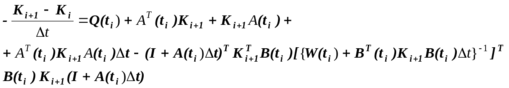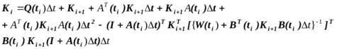 Оптимальная система управления, соответствующая найденному решению, представляет собой линейную систему с переменными по времени коэффициентами обратной связи, представленными элементами матрицы