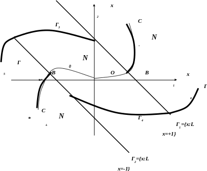 соответственно такие, которые пересекают гиперплоскости Г1 , Г2. в тех же точках, что и траектории Г3 , Г4, . При этом должны выполняться условия склейки: