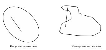 Множество выпукло, если для любых двух точек, принадлежащих этому множеству, ему принадлежит и соединяющий их отрезок.