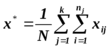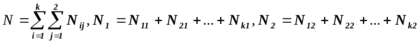 R = (N+1)/2- средний ранг, расcчитанный по всей совокупности значений rij i=1,...,ni, j=1,...,k,