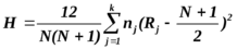 Критерий Краскела-Уоллиса предполагает проверку гипотезы H0, состоящей в том, что между столбцами таблицы различия отсутствуют. Для проверки гипотезы H0 значения xij, i=1,...,ni, j=1,...,k заменяются их рангами rij, упорядочивая всю совокупность значений xij, i=1,...,ni, j=1,...,k, например, в порядке возрастания. В основе критерия Краскела-Уоллиса лежит то обстоятельство, что при справедливости гипотезы H0, различия между средними рангами Rj, j=1,...,k, вычисленными по каждому из столбцов исходной таблицы рангов rij и средним рангом R, вычисленным по всей совокупности значений rij i=1,...,ni, j=1,...,k, должны быть незначительными. В качестве количественной меры указанных различий используется статистика Краскела-Уоллиса: